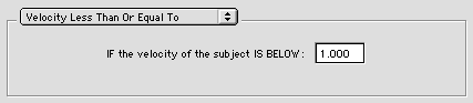 For example, in the Ares scenario "Shoplifter 2," when the player's ship comes within range of the UNS Ares to release the humans, this condition makes sure the humans are not released at too great a speed (like warp speed).