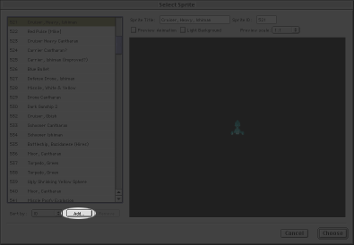 F. You'll be back at the Sprite Selector window; enter "Tutorial Ship" in the Sprite Title field; the I.D. should be 531