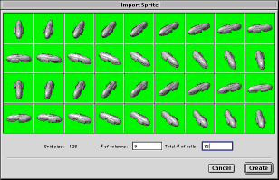 C. Navigate to the Tutorial Media folder (included with Hera) and open the file titled "tutorial ship@8.pict"; the Open dialog will close and the Sprite Importer will appear