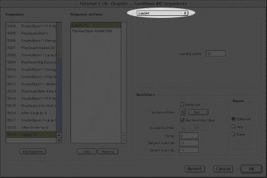 A. The current sequence, which gets executed every time an object of this type gets created, plays a single sound effect; you are going to duplicate this sequence and change the sound effect of the duplicate; click the Add Sequence button at the bottom of the Sequences list