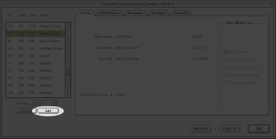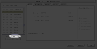 7. You're done with the Factory's Object Editor; bring that window, titled "Factory Scenarios: Choose Object" to the front and close it by clicking OK